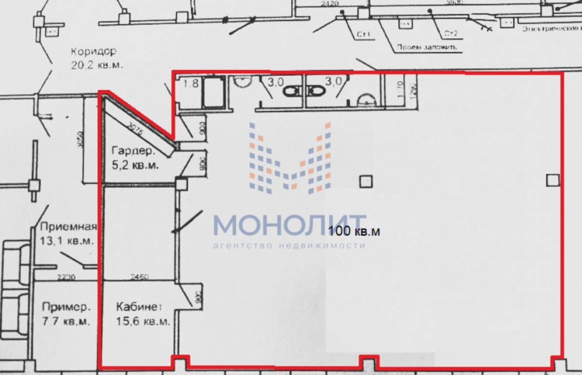 Опен спейс 100м2, два кабинета (18м2 и 7м2) и два отдельных санузла.