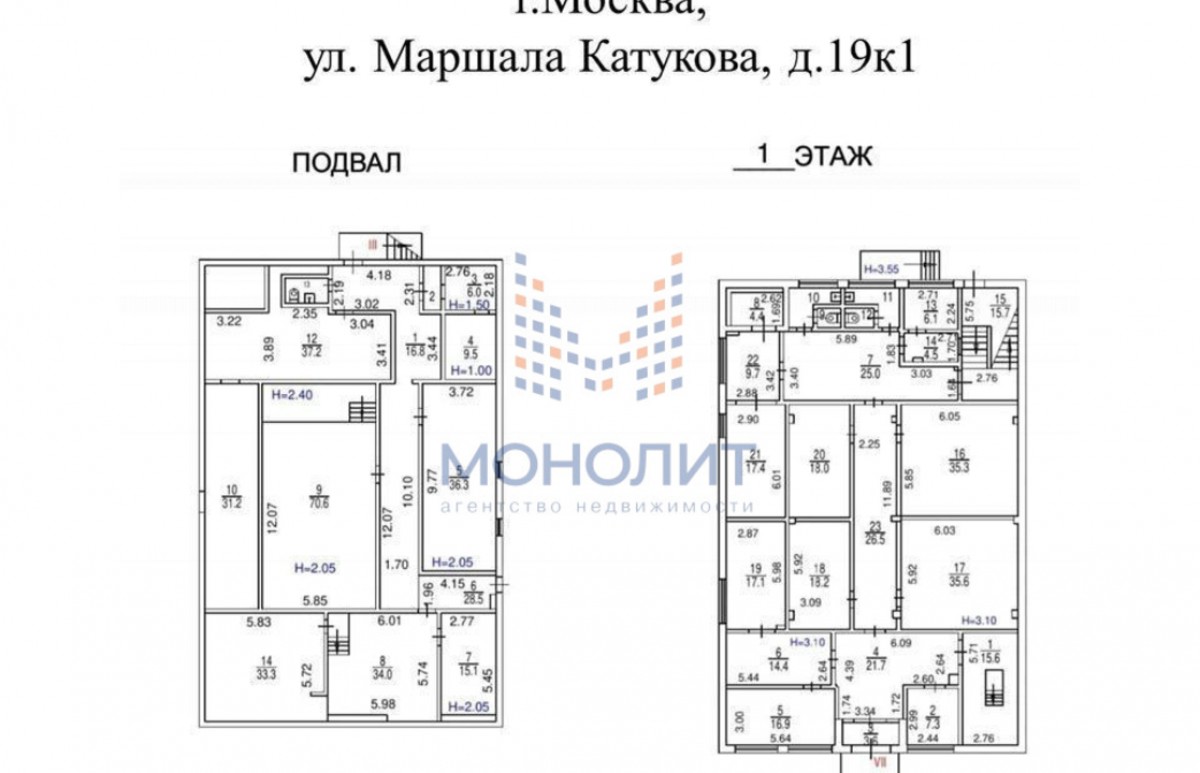 - Общая площадь: 1075 м² (подвал, 1, 2 этаж и небольшая часть на 3 этаже).