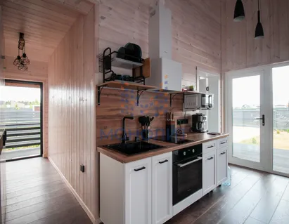 Современный одноэтажный дом в стиле барнхаус, 50 м² (с террасой 12 м²) на участке 5 соток. Полностью готов к проживанию.
