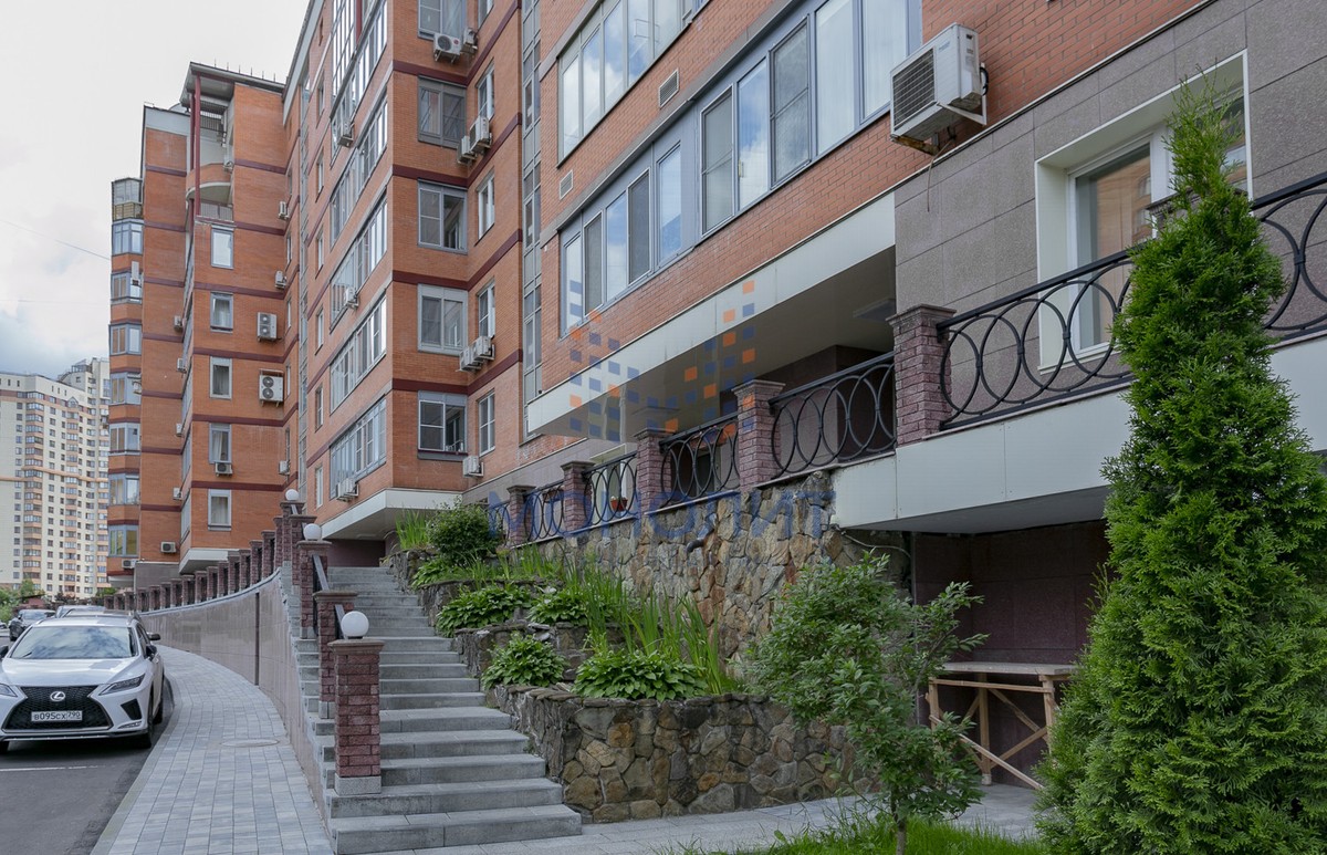 Большая, ухоженная территория дома в экологически чистом районе, огорожена и находится под круглосуточной охраной. Перед домом расположена парковая зона с детскими и спортивными площадками, школа и детсад в 1 мин ходьбы, не переходя дорогу. Окна выходят на парк и на сквер.