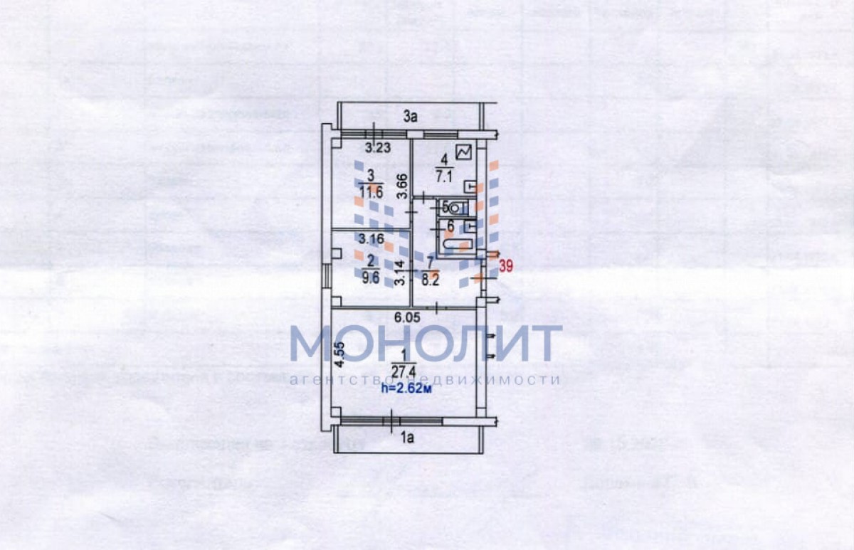 Три изолированные комнаты 27.4, 9.6 и 11.6 метров,