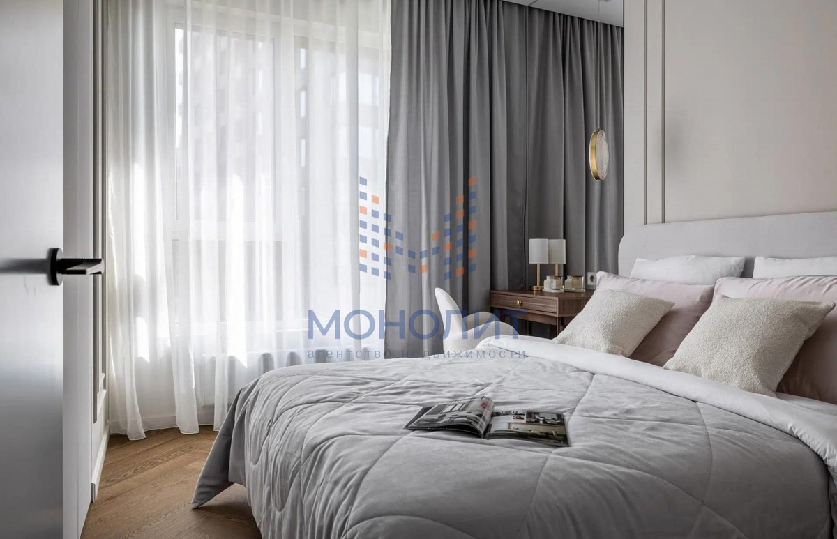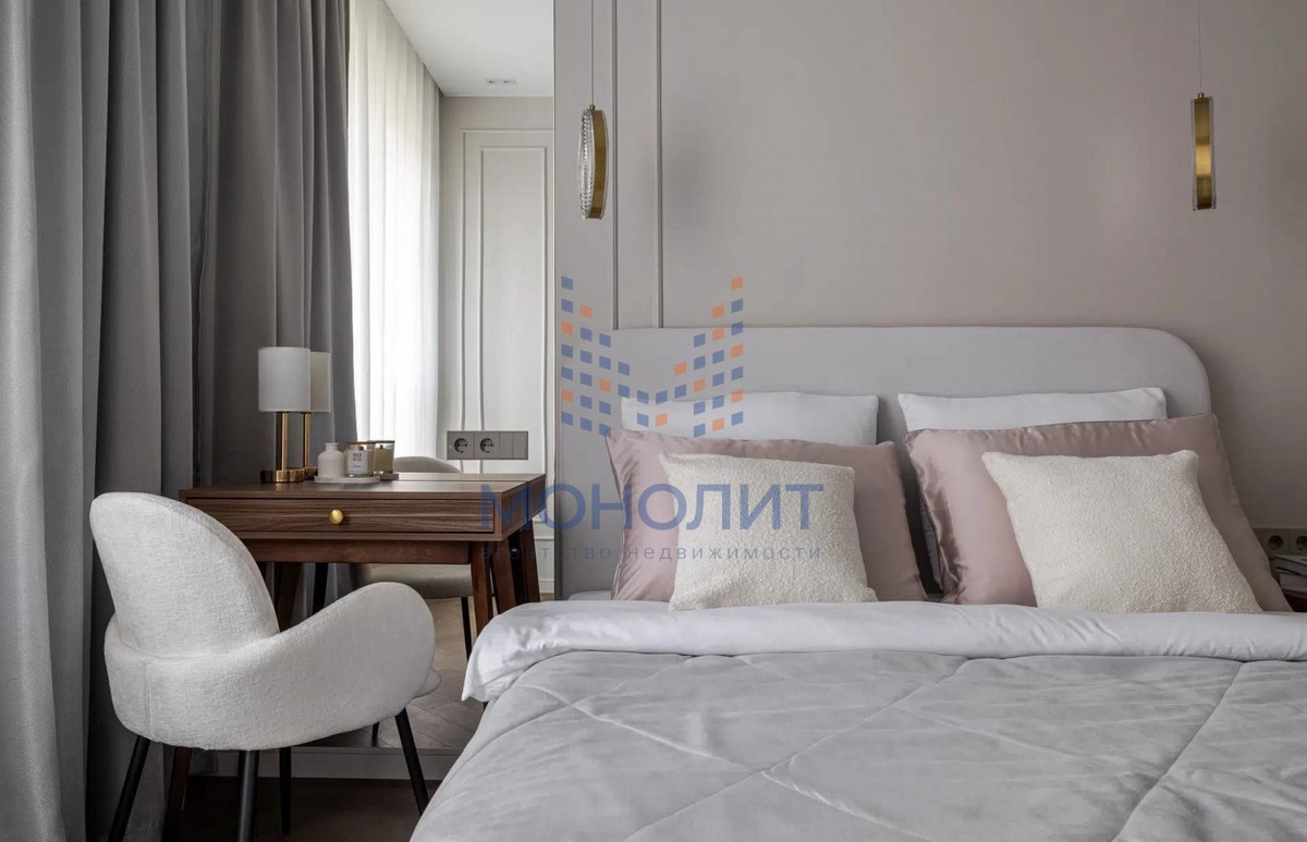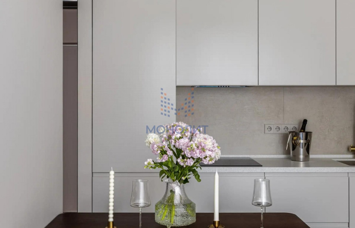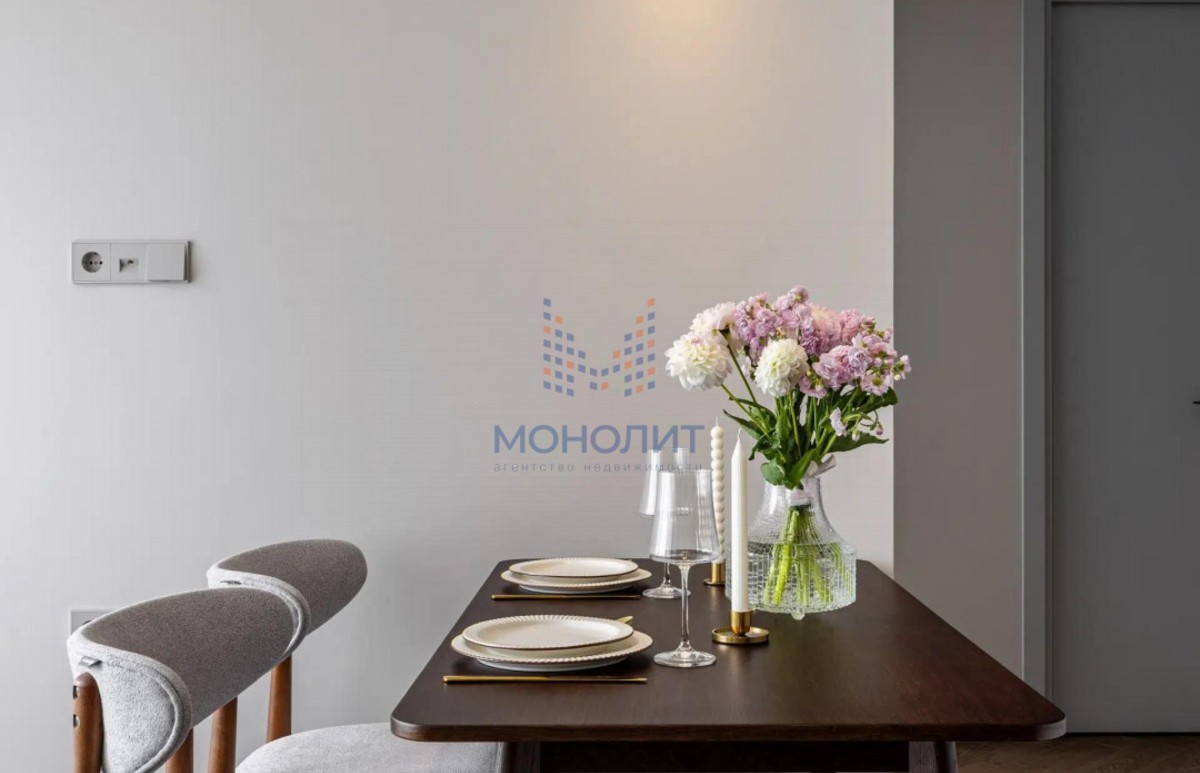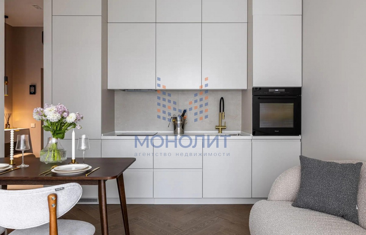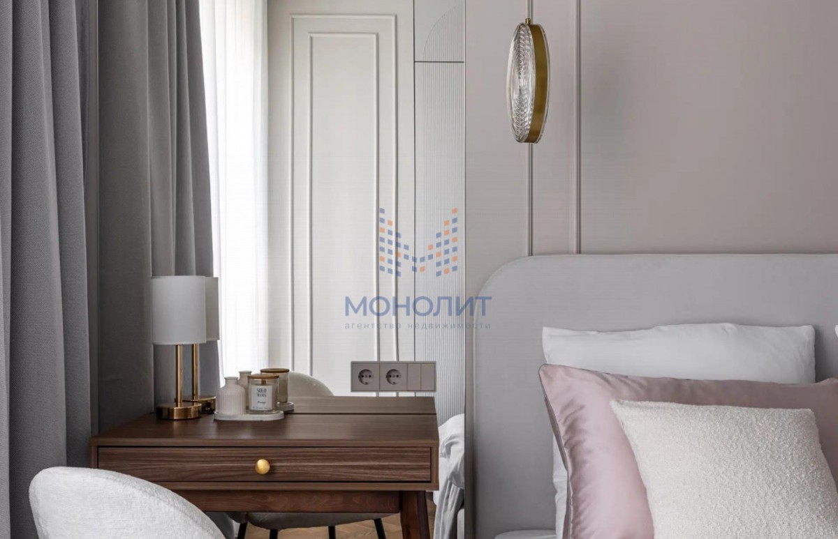 О квартире: Элегантный и утонченный дизайн в сочетании с продуманной эргономикой создает комфортное пространство, в котором учтена каждая деталь. В интерьере использованы гармоничные пастельные оттенки, продуманы несколько сценариев освещения. В квартире функциональная планировка, включающая в себя коридор с вместительной гардеробной, где предусмотрено место для стиральной и сушильной машин, просторную светлую комнату с большим встроенным шкафом, рабочим местом и шикарной кроватью с мягким изголовьем и подъемным механизмом 160 на 200. Кухня из эмали укомплектована хорошей техникой: посудомоечной машиной, холодильником, варочной панелью и электрическим духовым шкафом с встроенной СВЧ. Вся мебель и техника остаётся новому владельцу.