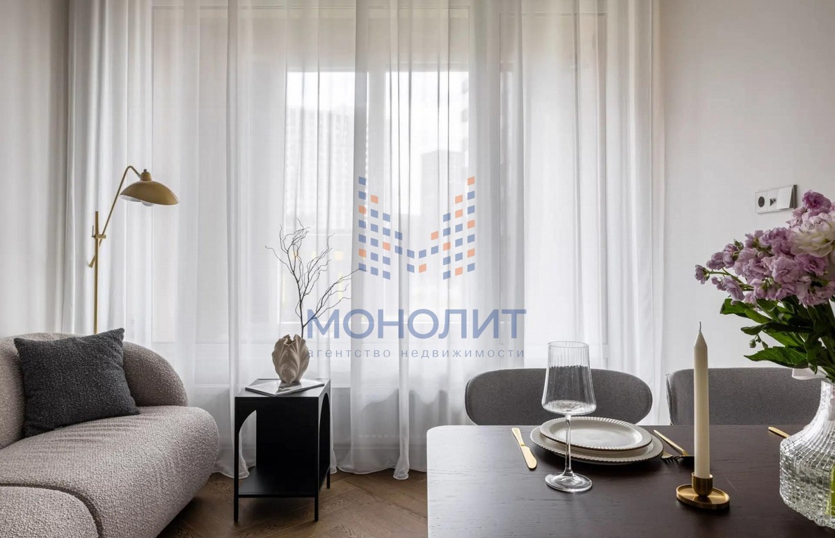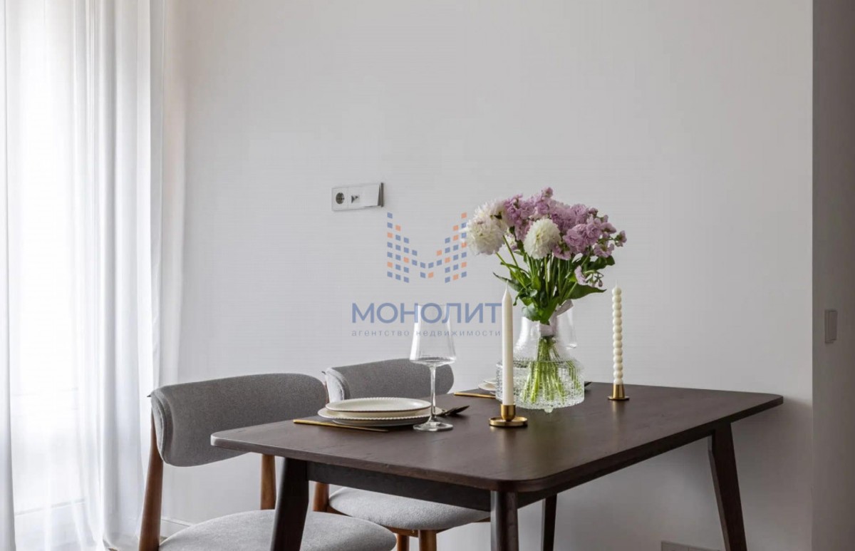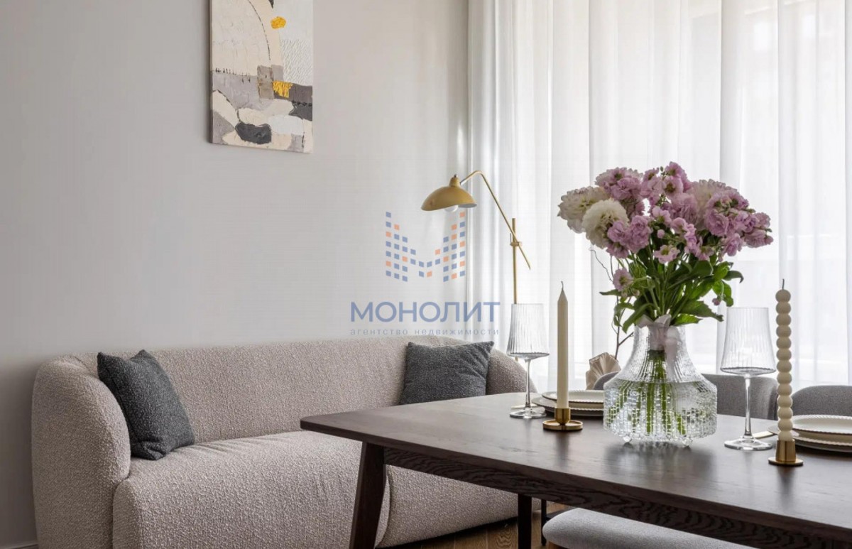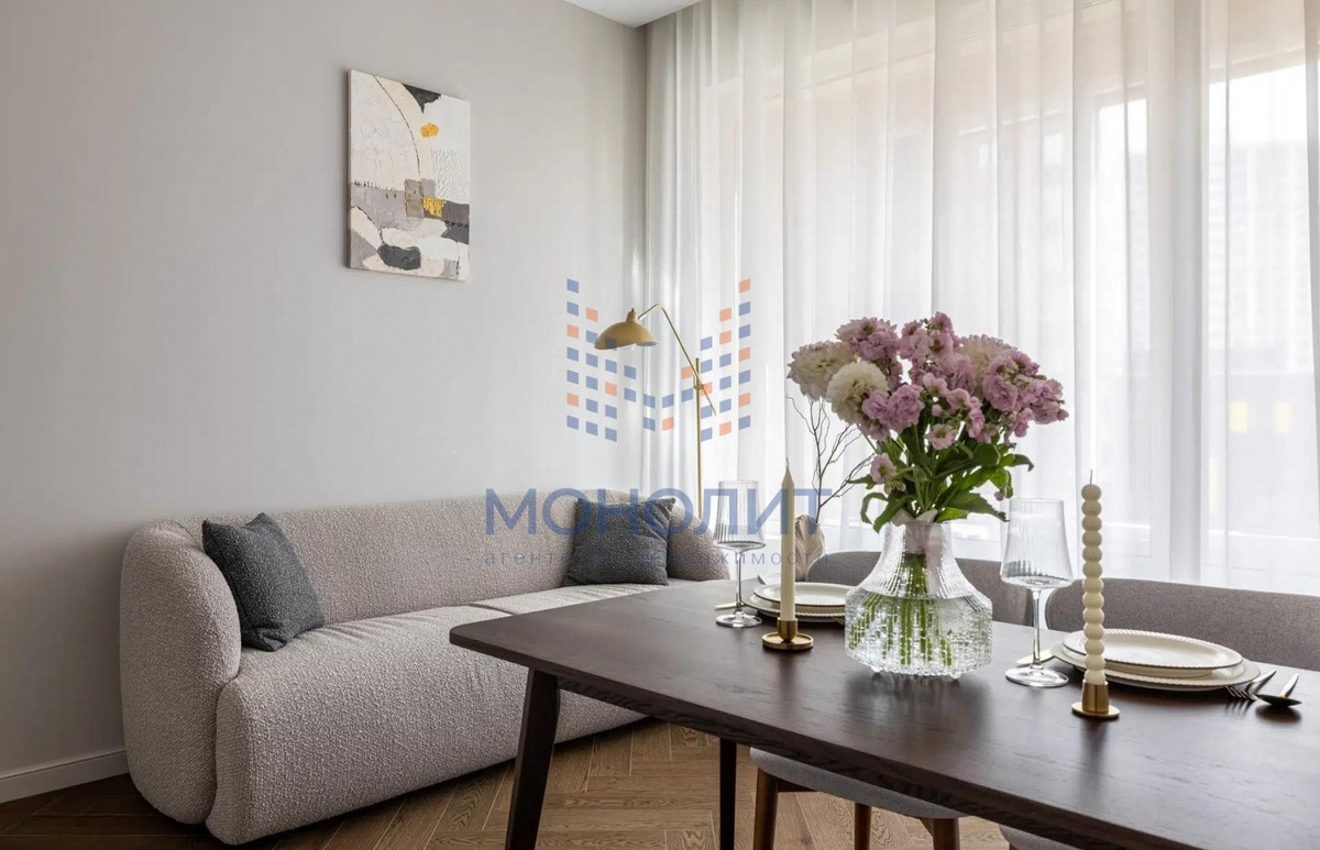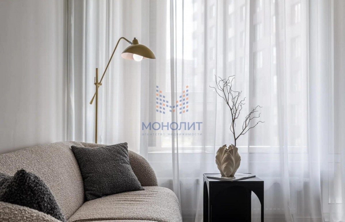 О квартире: Элегантный и утонченный дизайн в сочетании с продуманной эргономикой создает комфортное пространство, в котором учтена каждая деталь. В интерьере использованы гармоничные пастельные оттенки, продуманы несколько сценариев освещения. В квартире функциональная планировка, включающая в себя коридор с вместительной гардеробной, где предусмотрено место для стиральной и сушильной машин, просторную светлую комнату с большим встроенным шкафом, рабочим местом и шикарной кроватью с мягким изголовьем и подъемным механизмом 160 на 200. Кухня из эмали укомплектована хорошей техникой: посудомоечной машиной, холодильником, варочной панелью и электрическим духовым шкафом с встроенной СВЧ. Вся мебель и техника остаётся новому владельцу.