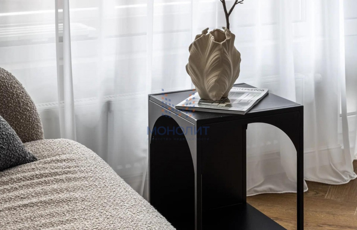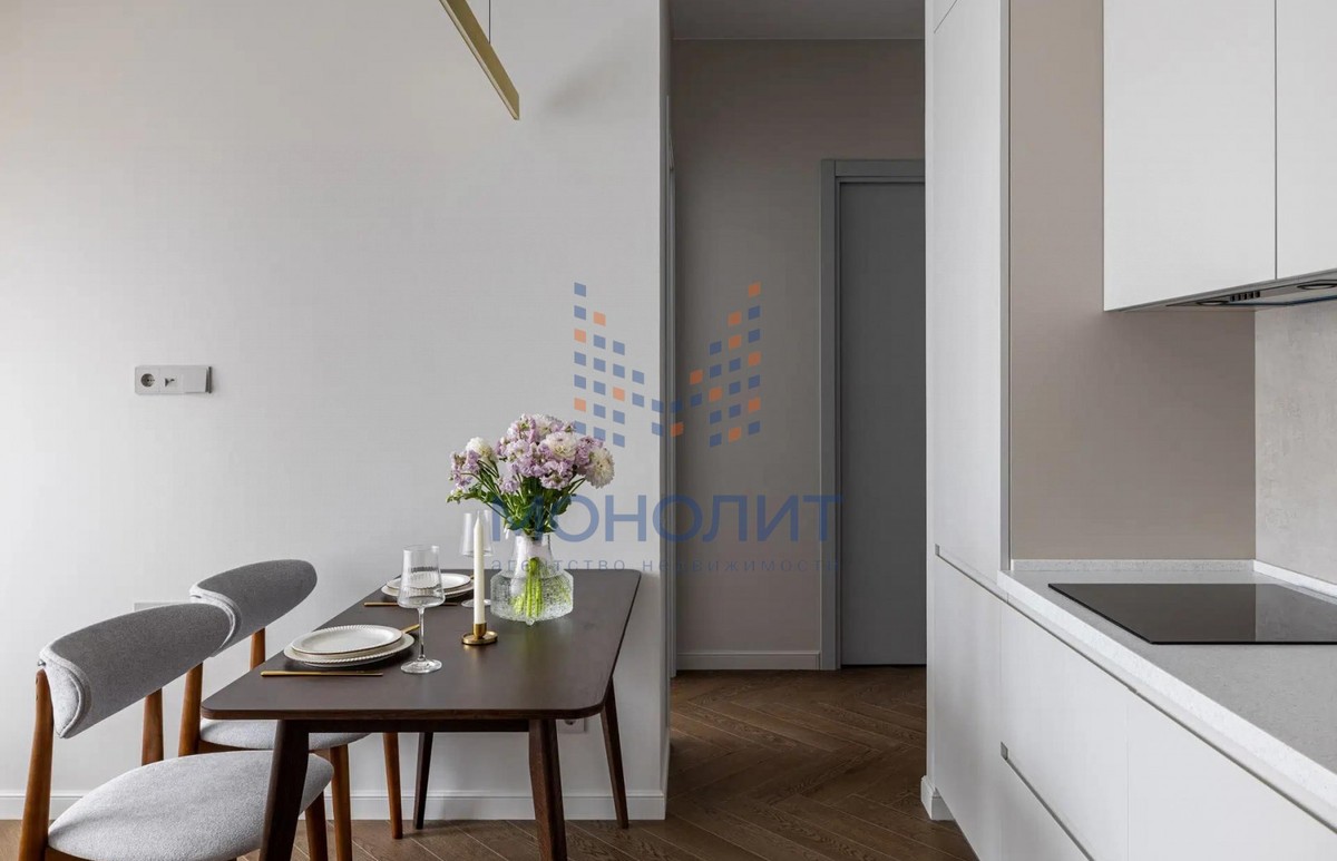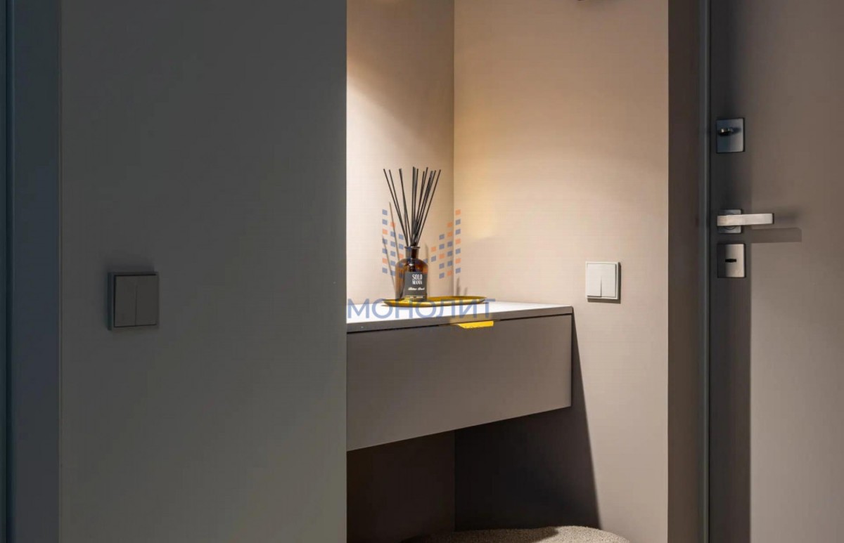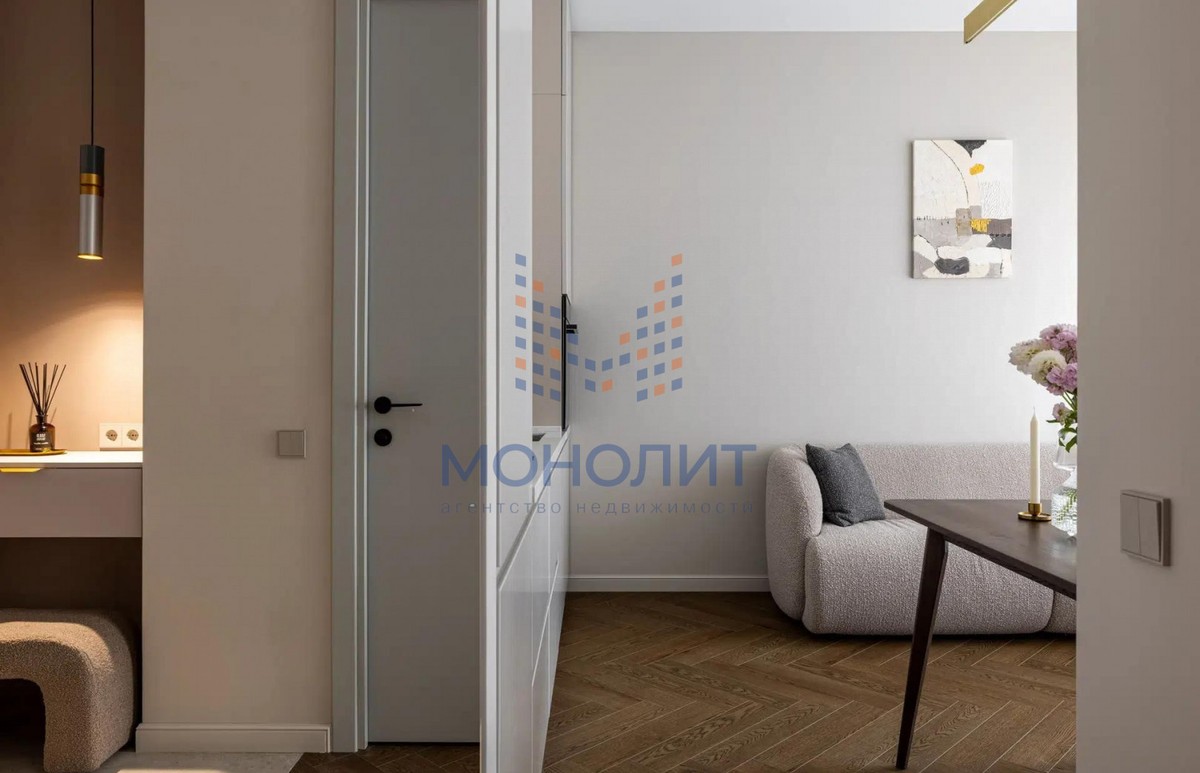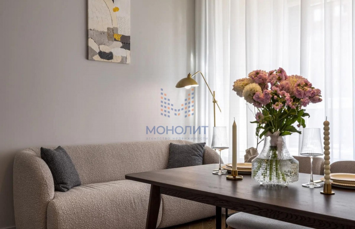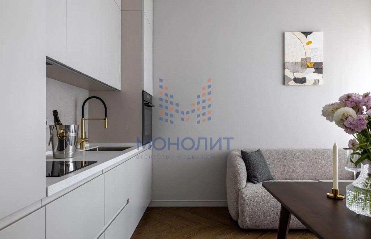 О квартире: Элегантный и утонченный дизайн в сочетании с продуманной эргономикой создает комфортное пространство, в котором учтена каждая деталь. В интерьере использованы гармоничные пастельные оттенки, продуманы несколько сценариев освещения. В квартире функциональная планировка, включающая в себя коридор с вместительной гардеробной, где предусмотрено место для стиральной и сушильной машин, просторную светлую комнату с большим встроенным шкафом, рабочим местом и шикарной кроватью с мягким изголовьем и подъемным механизмом 160 на 200. Кухня из эмали укомплектована хорошей техникой: посудомоечной машиной, холодильником, варочной панелью и электрическим духовым шкафом с встроенной СВЧ. Вся мебель и техника остаётся новому владельцу.