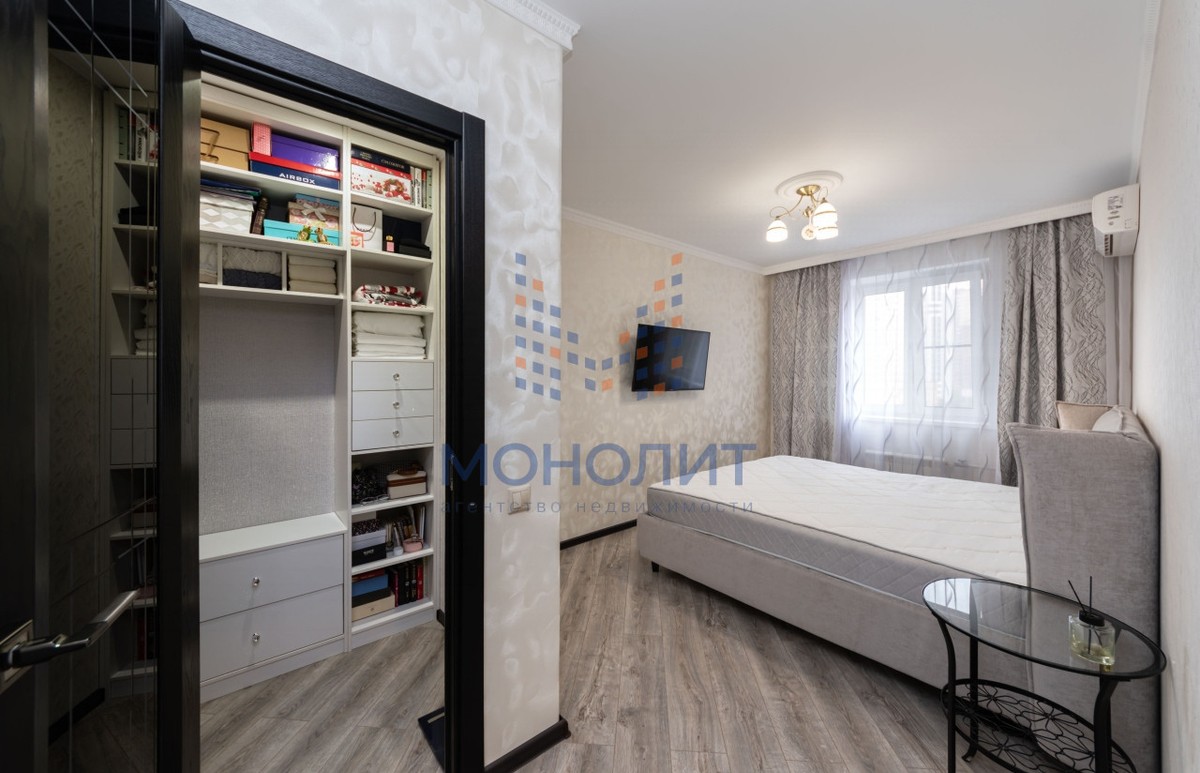 Две большие изолированные комнаты, одна из которых спальня с встроенной гардеробной. Пространство для хранения вещей организовано удобно и компактно.