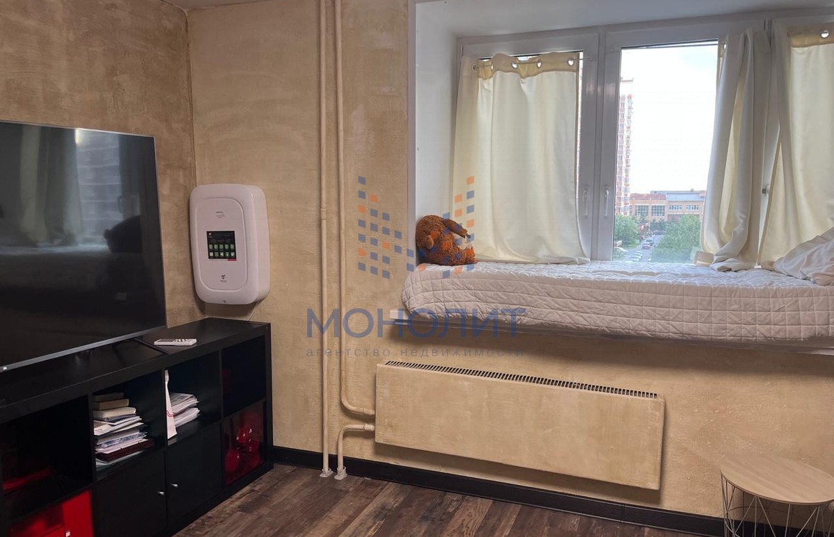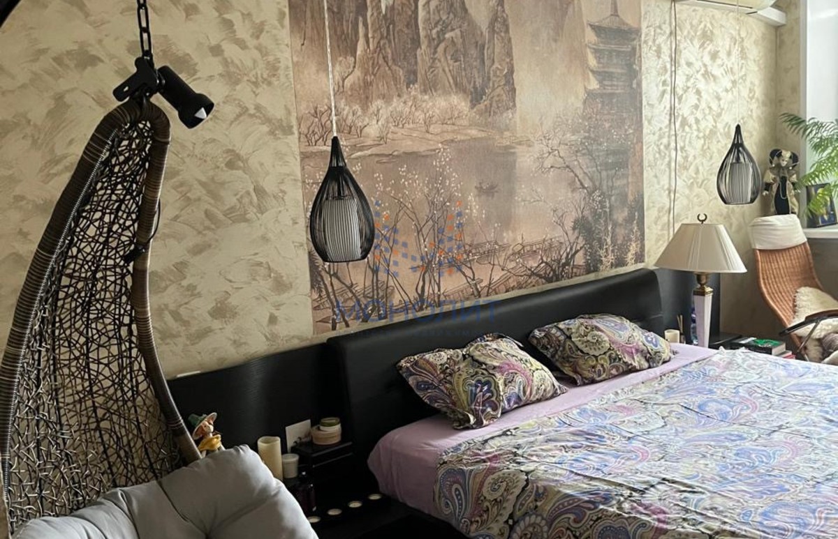 В квартире сделан ремонт в светлых тонах. Окна -стеклопакет 70 мм; потолки - натяжные; стены - обои, декоративная штукатурка, фрески, в санузлах -плитка и декоративное окрашивание. Пол в разных зонах - ламинат, плитка, кварцвинил. В одной из комнат установлен кондиционер. Так же установлено устройство приточной вентиляции -бризер для очистки и нагрева/охлаждения воздуха с улицы без открывания окна. На кухне - фильтр для очистки воды.