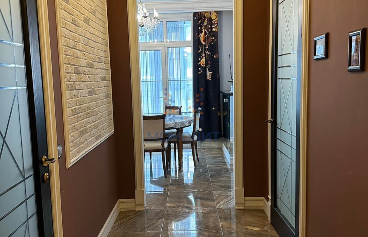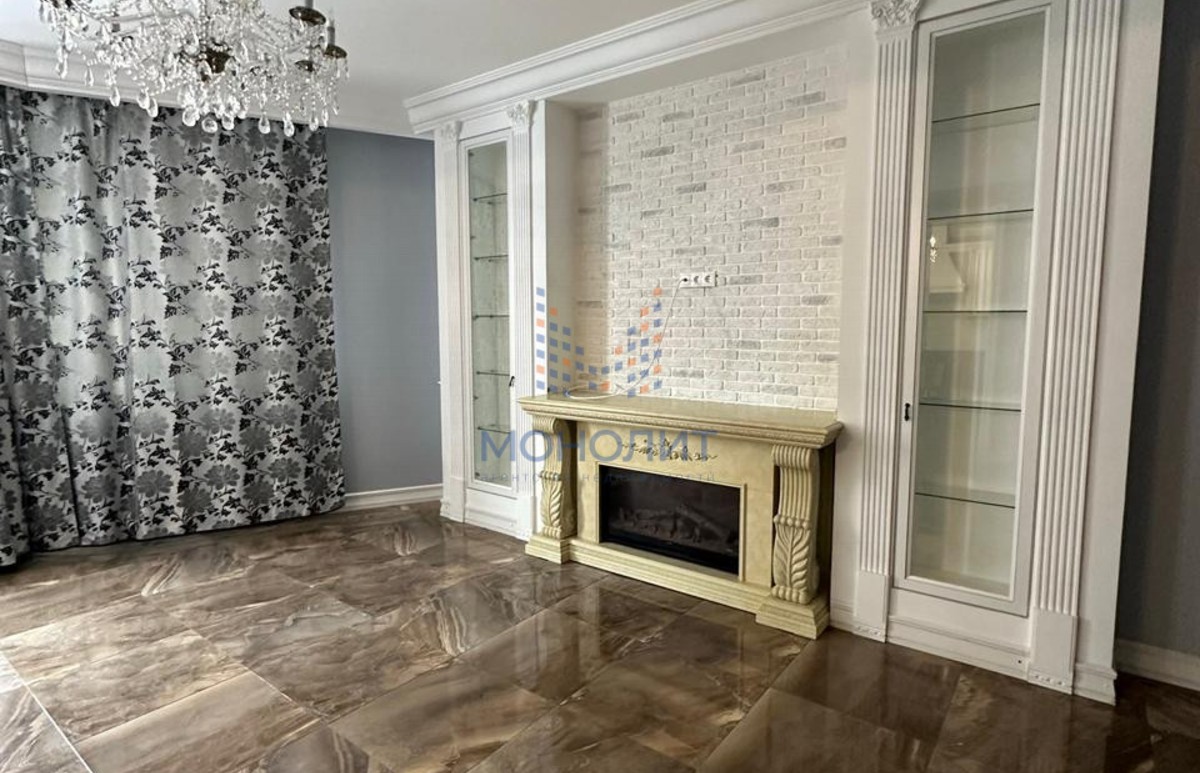 Общая площадь - 69.4 кв.м. Большая кухня-гостиная с камином, спальня, гардероб и совмещенный санузел. Дизайнерский ремонт.