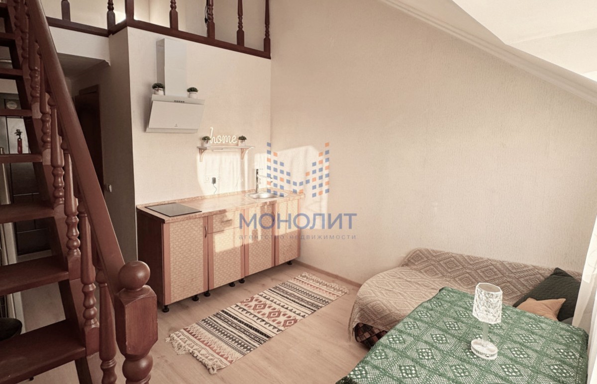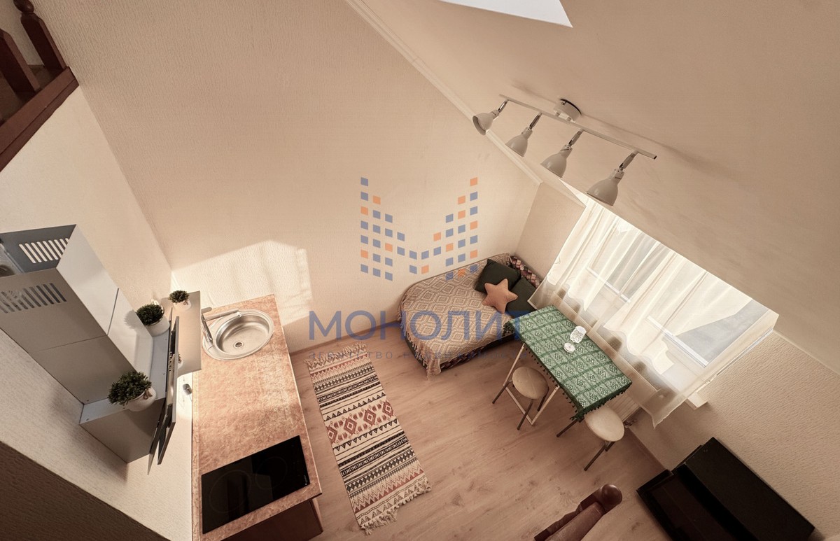 Уникальная и уютная двухъярусная квартира студия, 26,1 м2, в зелёном районе с прекрасной транспортной доступностью.