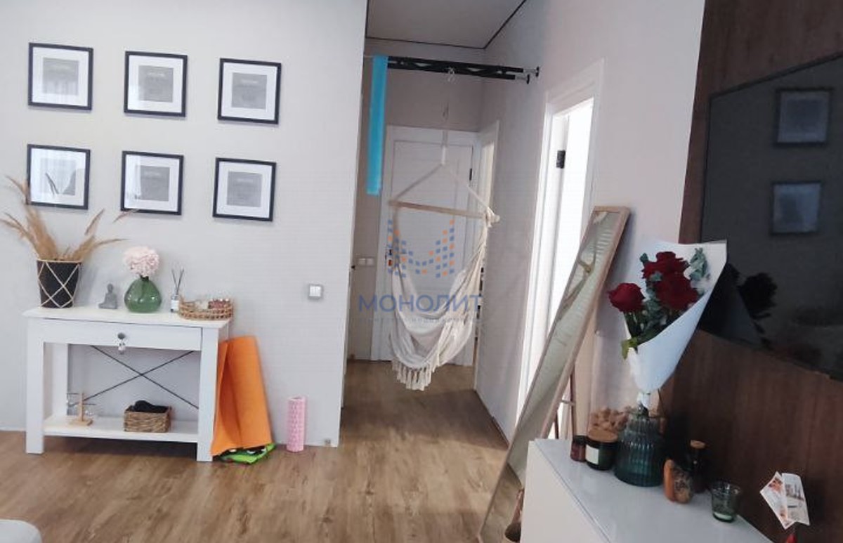 - Жилая зона включает две отдельные комнаты и просторную кухню-гостиную площадью 16,7 м².