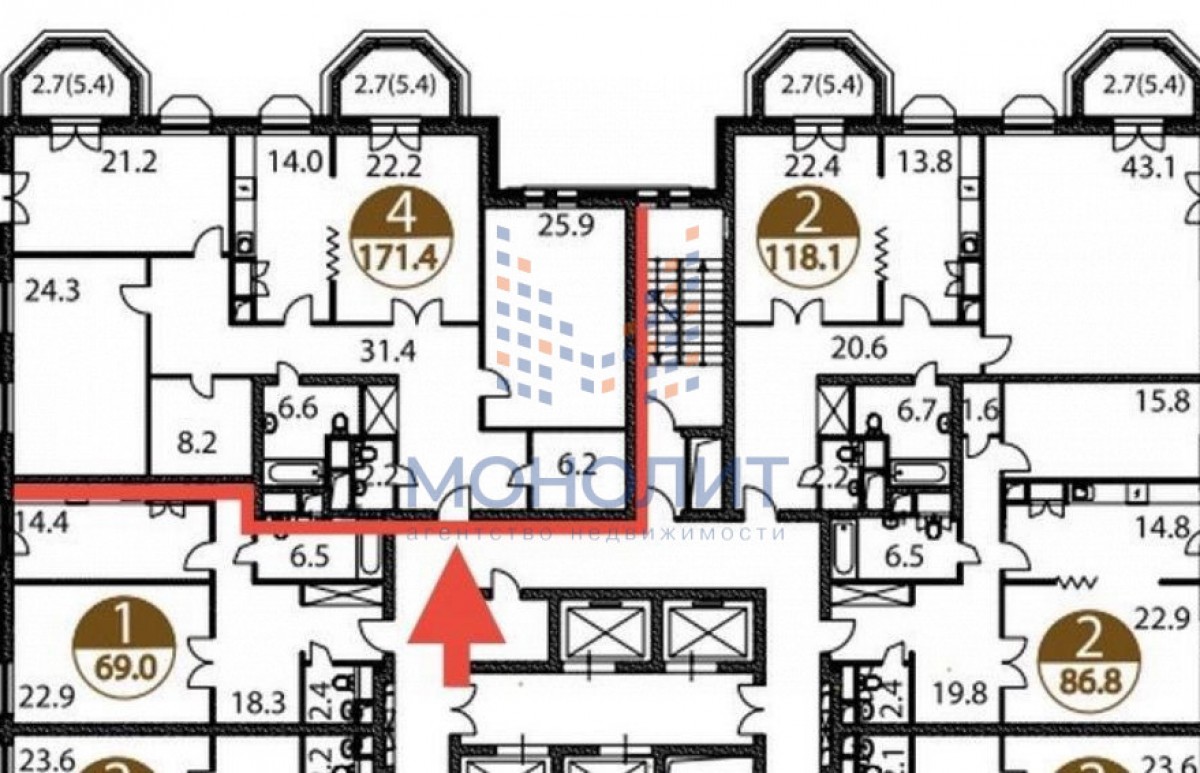 - Тип дома Кирпично-монолитный
