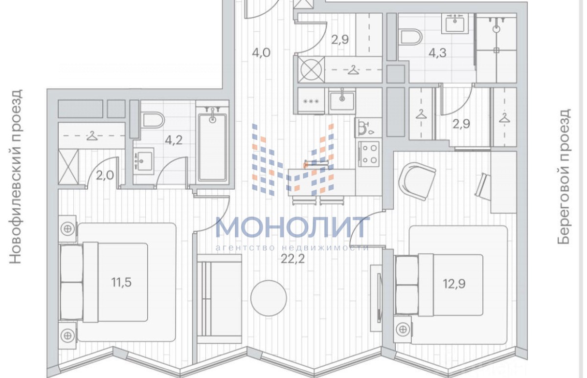 3-комнатная квартира, 65.5 м², 19/24 эт. – Береговой проезд, 2