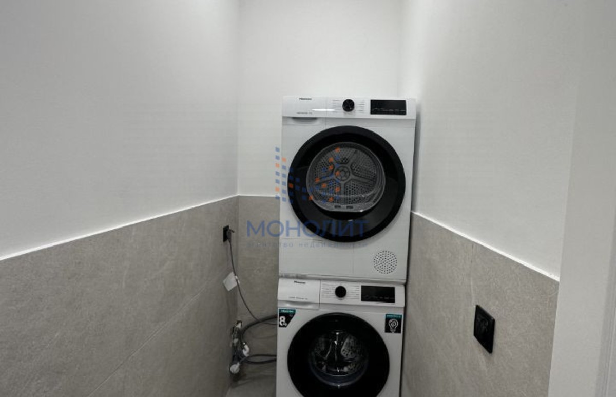Отдельная просторная постирочная: установлены стиральная и сушильная машины, при желании можно добавить стеллажи.