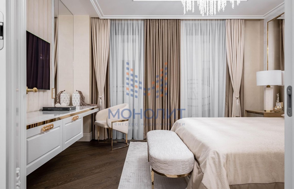 Апартаменты полностью готовы к проживанию — вся мебель, техника, текстиль и элементы декора остаются новому владельцу.