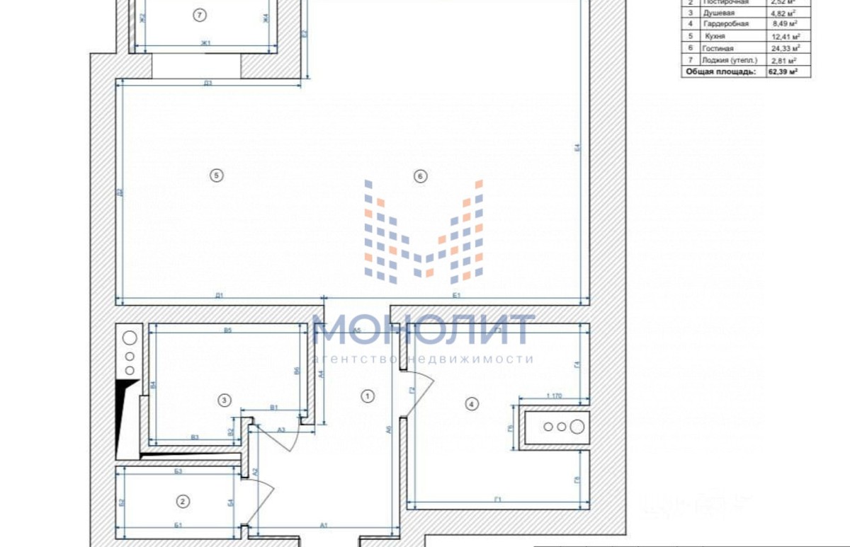 Площадь: 62,3 кв.м.