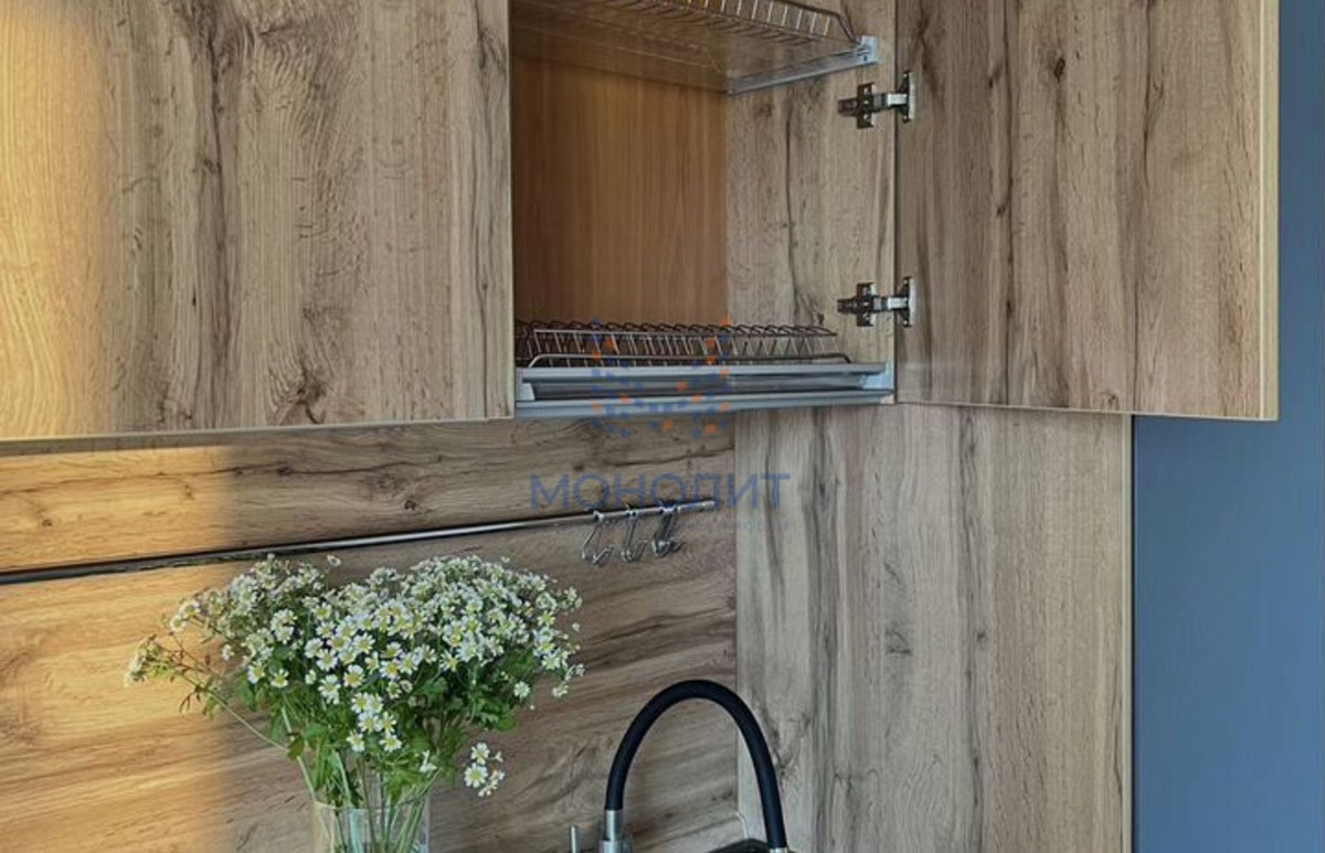 — Просторная кухня (13,5 кв. м.), большое окно. Кухня изготовлена на заказ, использовались дорогие, качественные материалы, много шкафов, эмалевое покрытие.