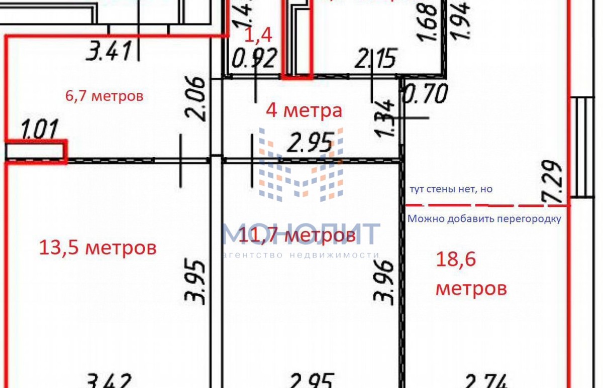 — Большую комнату можно разделить на 2 маленькие.