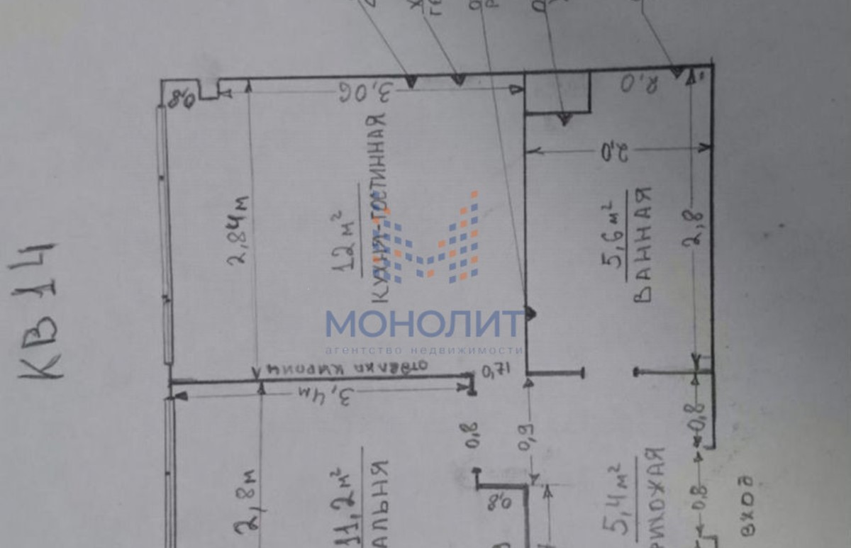 - Площадь кухни 12 кв.м