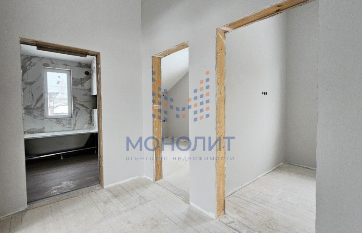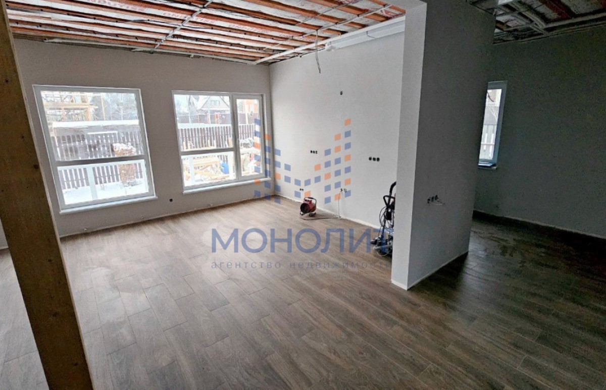Дом на стадии завершения. Осталась установка межкомнатных дверей, натяжного потолка и установка мебели. Внутренние работы по отделке стен и напольного покрытия уже завершены. Так же завершено обустройство территории.