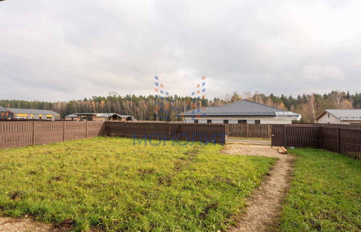 Участок ровный, по всему периметру участка установлен забор в едином стиле поселка. Ворота автоматические.