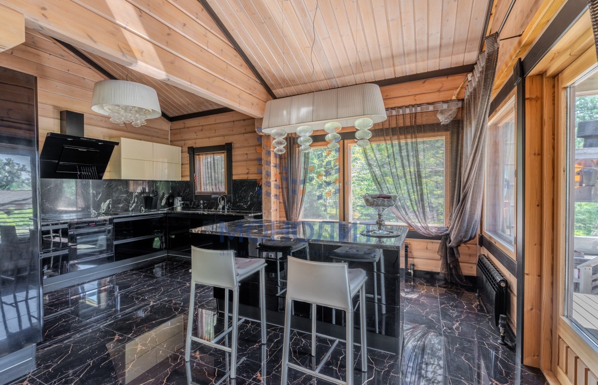 - Кухня-столовая с выходом на террасу — идеальна как для будней, так и для званых ужинов на свежем воздухе;