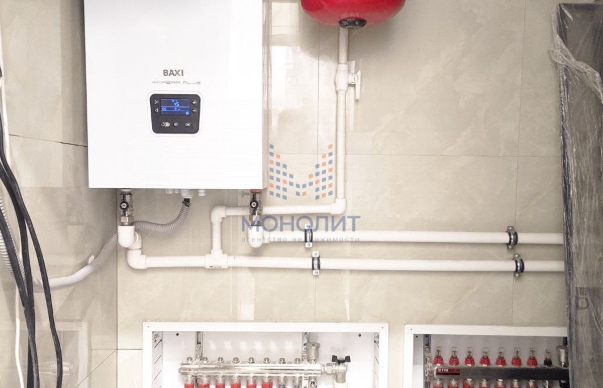 * радиаторы отопления по стенам и перед окнами в полу, всё подключено, всё работает,
