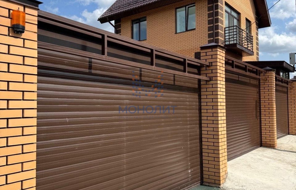 Парковка на 2 машины, ворота АЛЮТЕХ Стены полностью из кирпича.