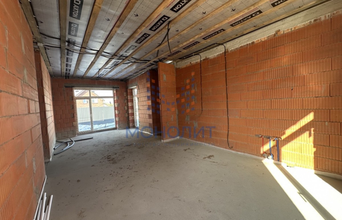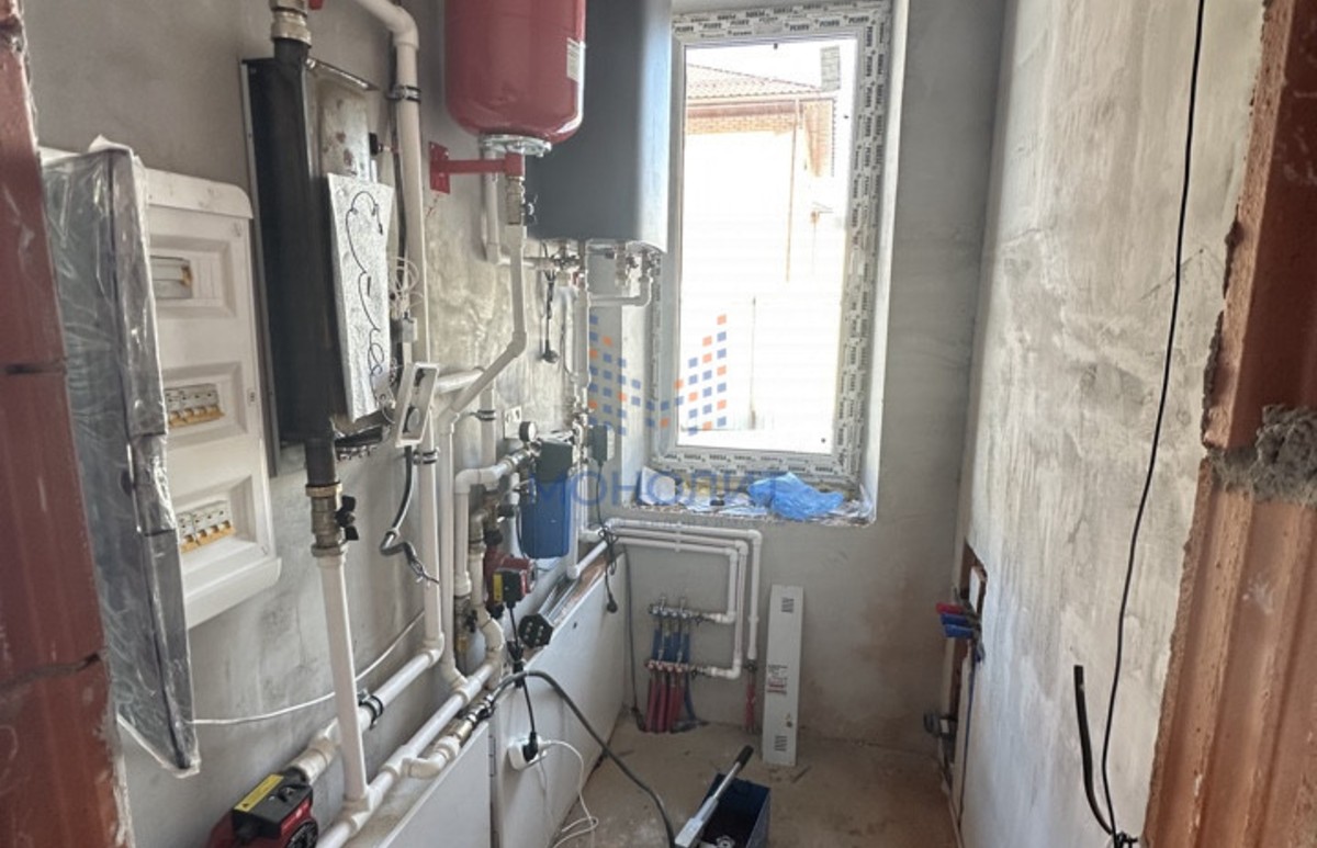 Выполнена стяжка полов по всему дому с разводкой тёплых полов, тёплый контур вокруг окон, разведено электричество по дому.