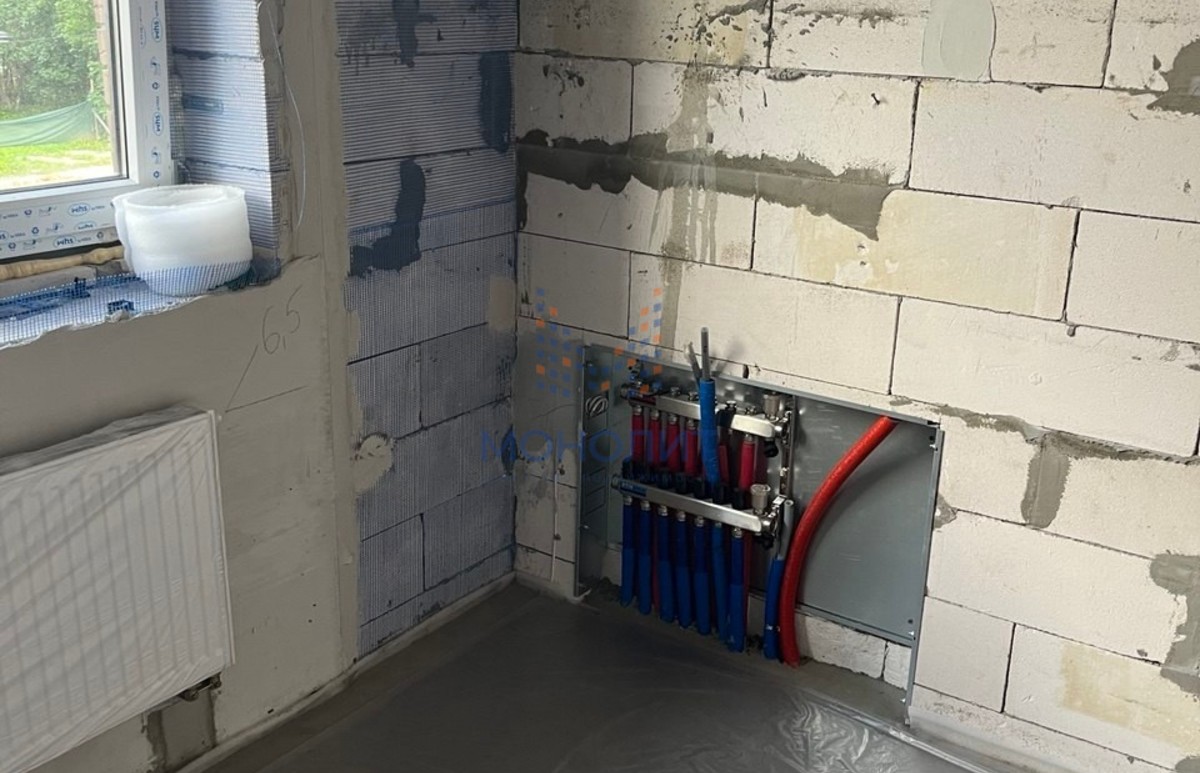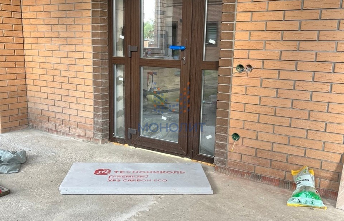- Особенности: высокие потолки, панорамные стеклопакеты, теплые полы, ленточный фундамент.