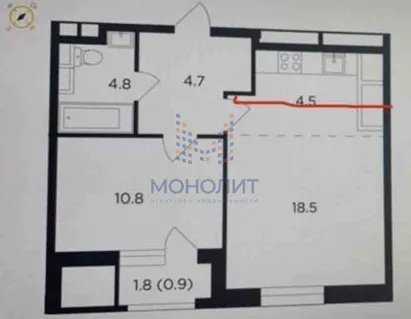 1-комнатная квартира 39 м² 3/18 эт.