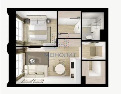 1-комнатная квартира 30 м² 1/8 эт.