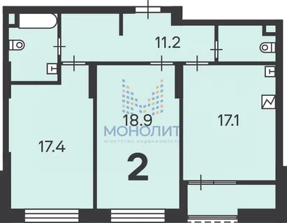 2-комнатная квартира 56 м² 9/9 эт.