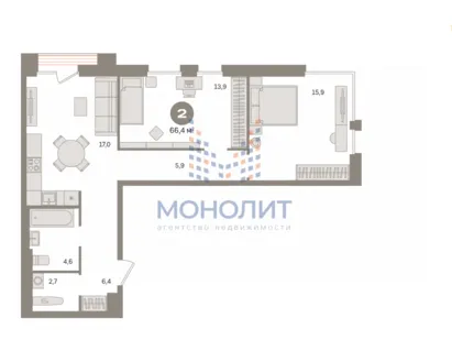 2-комнатная квартира 65 м² 16/17 эт.