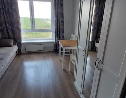 Уютная квартира-студия в новом, спокойном районе г. Москвы, с большим панорамным окном, готовая к проживанию.
