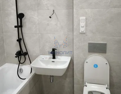 Качественная сантехника,на полу керамогранит, система теплый пол.Окна в кухни-гостиной в панорамными в пол окнами.