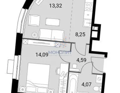 1-комнатная квартира 35 м² 12/25 эт.