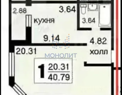 · Общая площадь: 34.3кв.м.