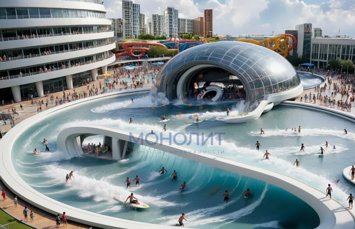 * 1 км пешком до СПОРТИВНОГО КЛАСТЕРА, который воплощает застройщик А101 с фитнес-центром, с горнолыжным курортом, с крупнейшем в России аквакурортом (с искусственным каньонингом в том числе), кластер будет включать 14 объектов спортивного, развлекательного, научно-познавательного, делового и торгового назначения.