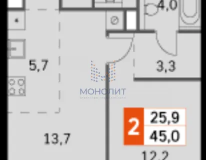 2-комнатная квартира 45 м² 30/57 эт.